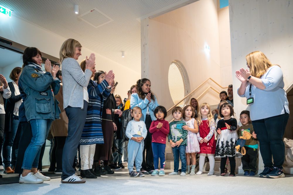 Eva-Maria Holzleitner, Federal Minister for Women, Science and Research, and Lower Austria State Parliament Representative and Klosterneuburg Mayor Christoph Kaufmann on behalf of Johanna Mikl-Leitner, Governor of Lower Austria, took part in a discussion moderated by ISTA Division Head for Communications Harald Wilkoszewski, on measures to promote work-life balance to further position Austria as a science and business hub. In this context, they emphasized the importance of the new kindergarten. Rounding out the program, the festivities also featured a musical performance about the season of fall by the kindergarten children and a tour of the building.